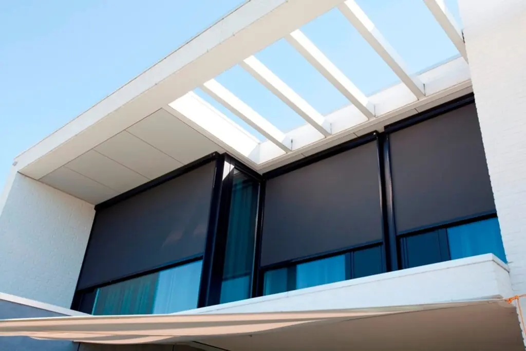 Screens zijn buitenzonwering die bij ramen wordt geplaatst om zonlicht en warmte te beperken.